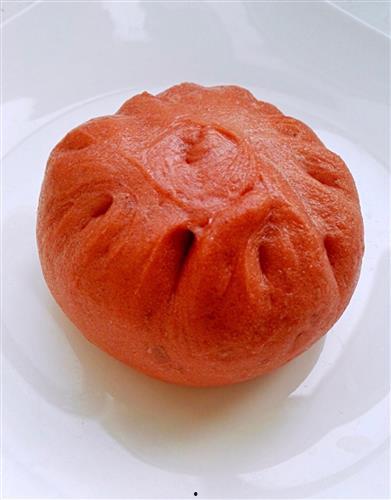 1. 鲜嫩多汁的红色包子,让人垂涎欲滴。